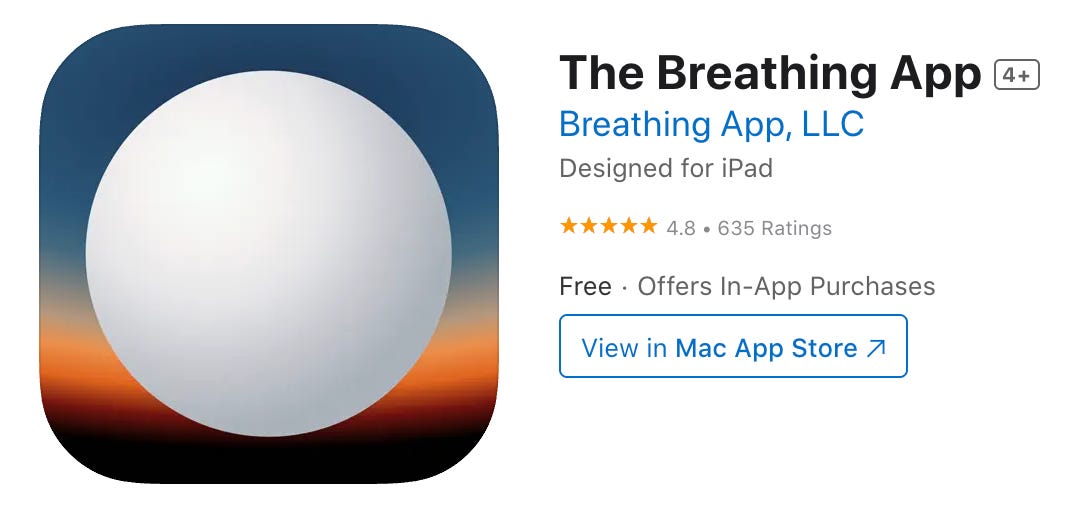 The Breathing App was shared as one FREE resource to experiment with different breathing patterns, sound preferences, and length of practice. There are many options for breathing apps (Headspace, Calm), videos (Headspace on Netflix, simple YouTube search), and strategies to support breathwork.